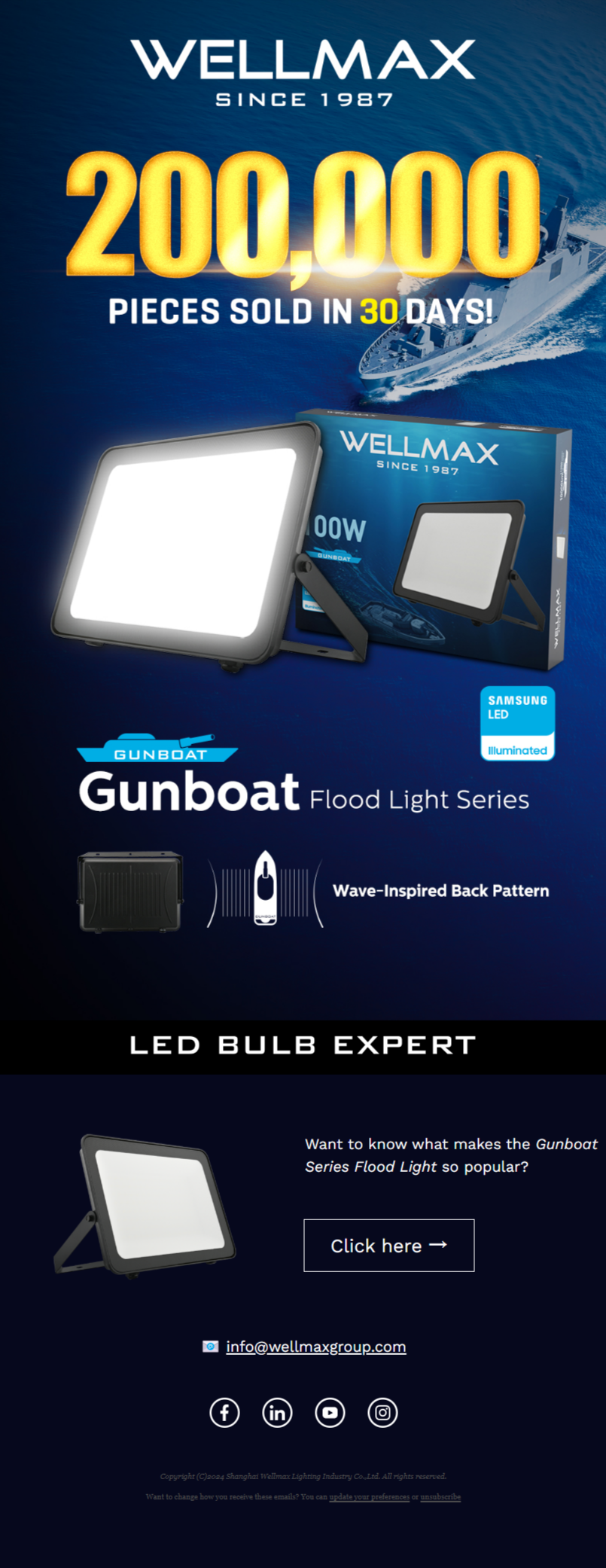 صمم بخلفية مستوحاة من شكل الموجة وهيكل دائري أنيق، يجمع هذا الكشاف بين التصميم العصري والأداء العملي. زجاجه المحبب عالي الجودة يقلل الانبهار البصري، بينما يضمن الزجاج المقوى المتين قوة تحمل عالية. يعمل بتقنية Samsung LED ليمنحك إضاءة قوية وفعالة تغطي المساحات الواسعة—مثالي للواجهات المعمارية، المناطق الخارجية، والمواقع الصناعية.